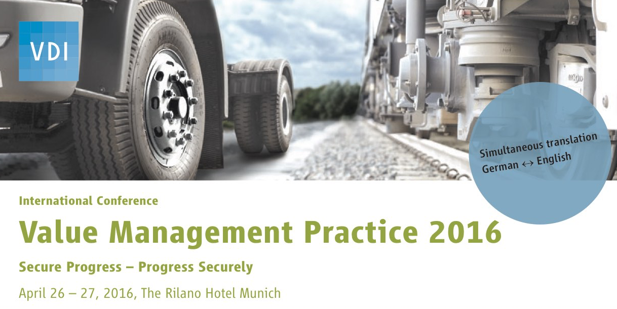 April 26-28 2016 are the dates to remember for the International VA conference in Munich, Germany. The theme of the conference is: Value Management Practice 2016, Secure Progress – Progress Securely For more information, please consult the document here: