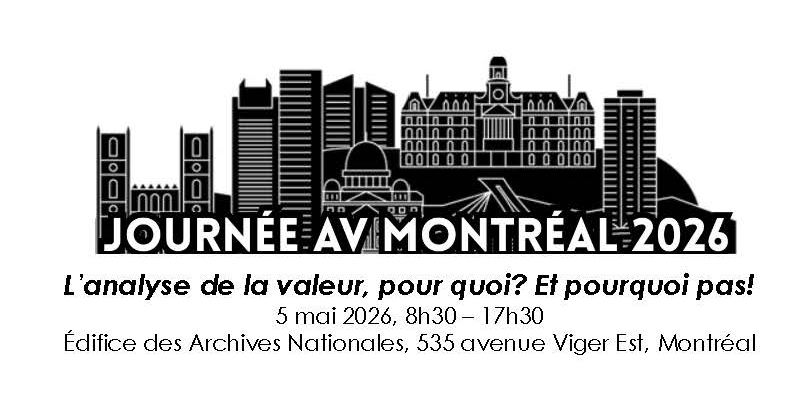 Registration Value Day Montreal will be presented in French. Eight speakers will discuss projects optimized through value analysis, how the approach has evolved over the years, and its interaction with the integrated design process (IDP) and risk management. Whether you are an engineer, architect, project manager, or business analyst, come discover or rediscover why VA continues to be used after so many years. How could you not love this mini-symposium? We hope you will join us May 5 2026 at the...